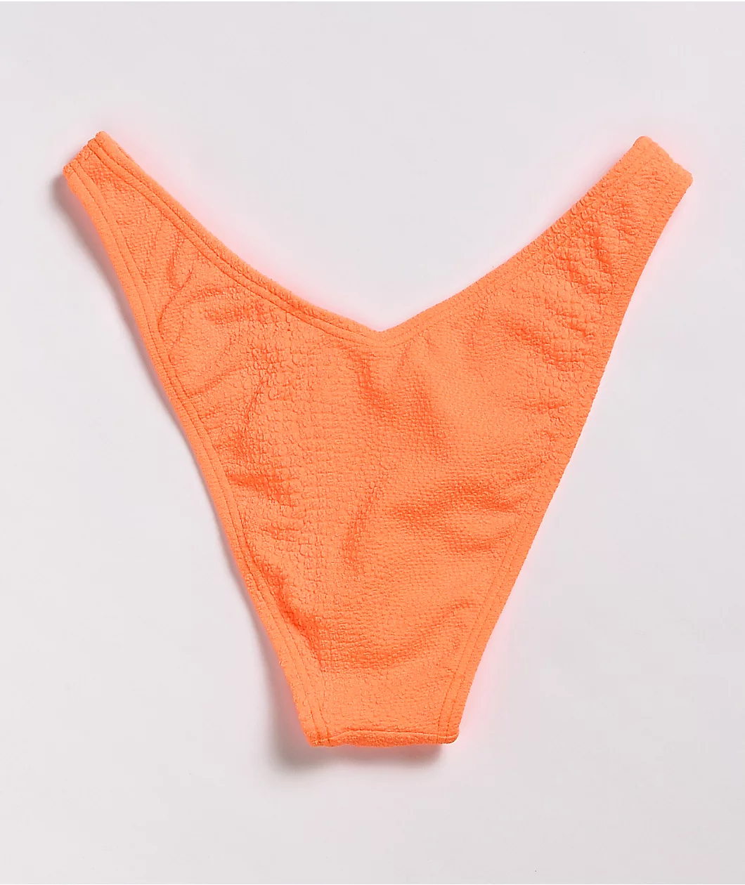 Highlight your beach style in vibrant fashion with the Damsel Croc Orange high leg cheeky bikini bottom. The coral orange colorway and fuzzy feel add some serious head turning flair, while the high leg cut adds a fashion-forward silhouette for a must-have look overall.
