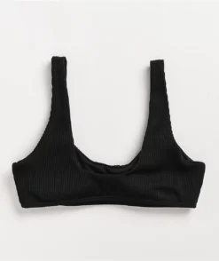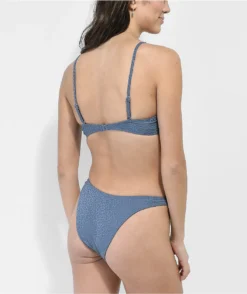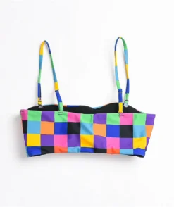 Lay out all summer long in fresh style with the Damsel Maldive Mini Rib blue bandeau bikini top. This mostly blue top comes with white straps and matching white piping for bold contrast, while the classic bandeau-style silhouette adds some cute and classic vibes as well.