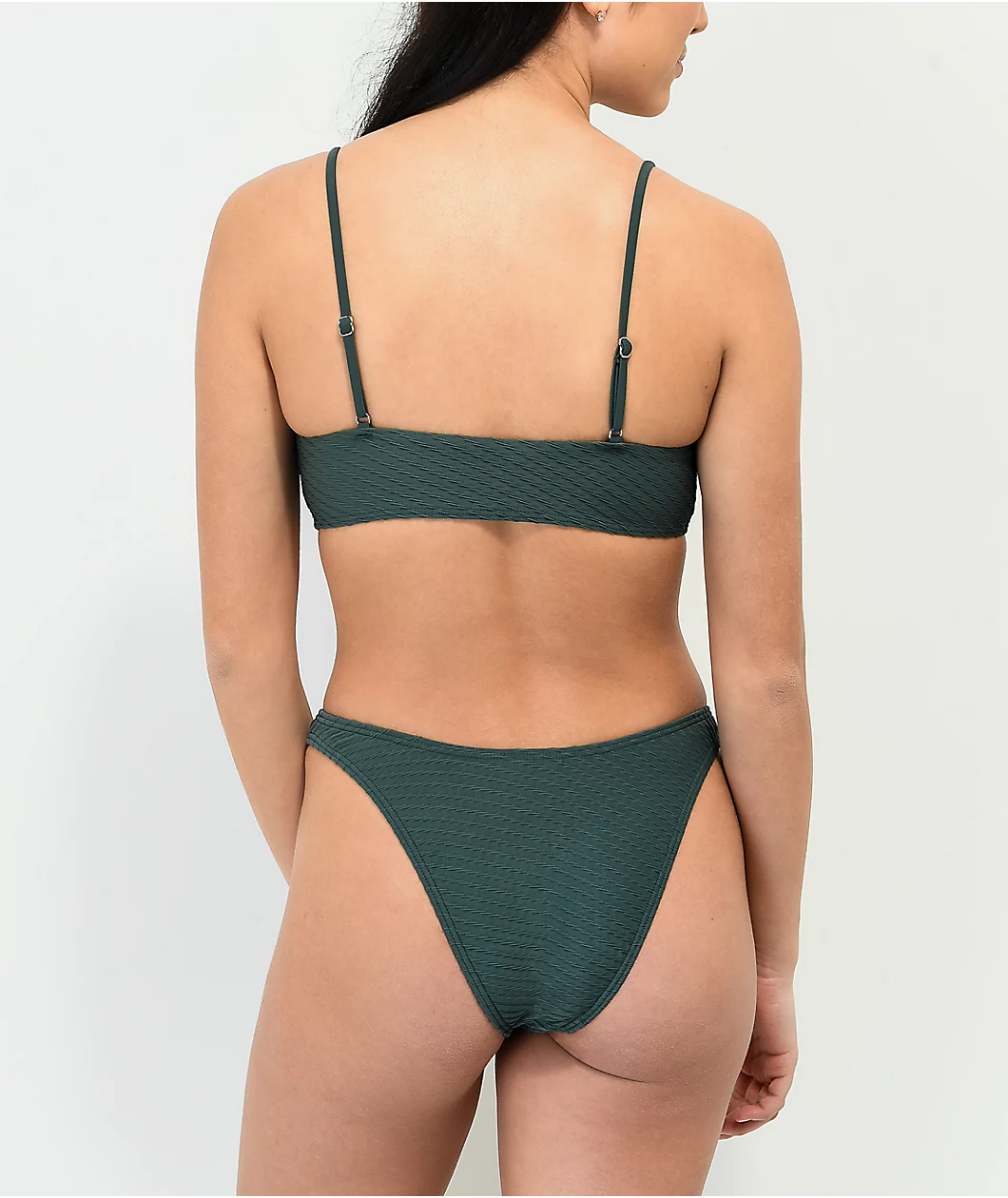 Damsel’s Sacramento ropes bikini bottom have a high leg cut and a turquoise colorway outfitted with subtle horizontal rows of rope-like texture. The interior of these bathing suit bottoms are fully lined, while the hips are equipped with fixed straps for a comfortable and secure fit.