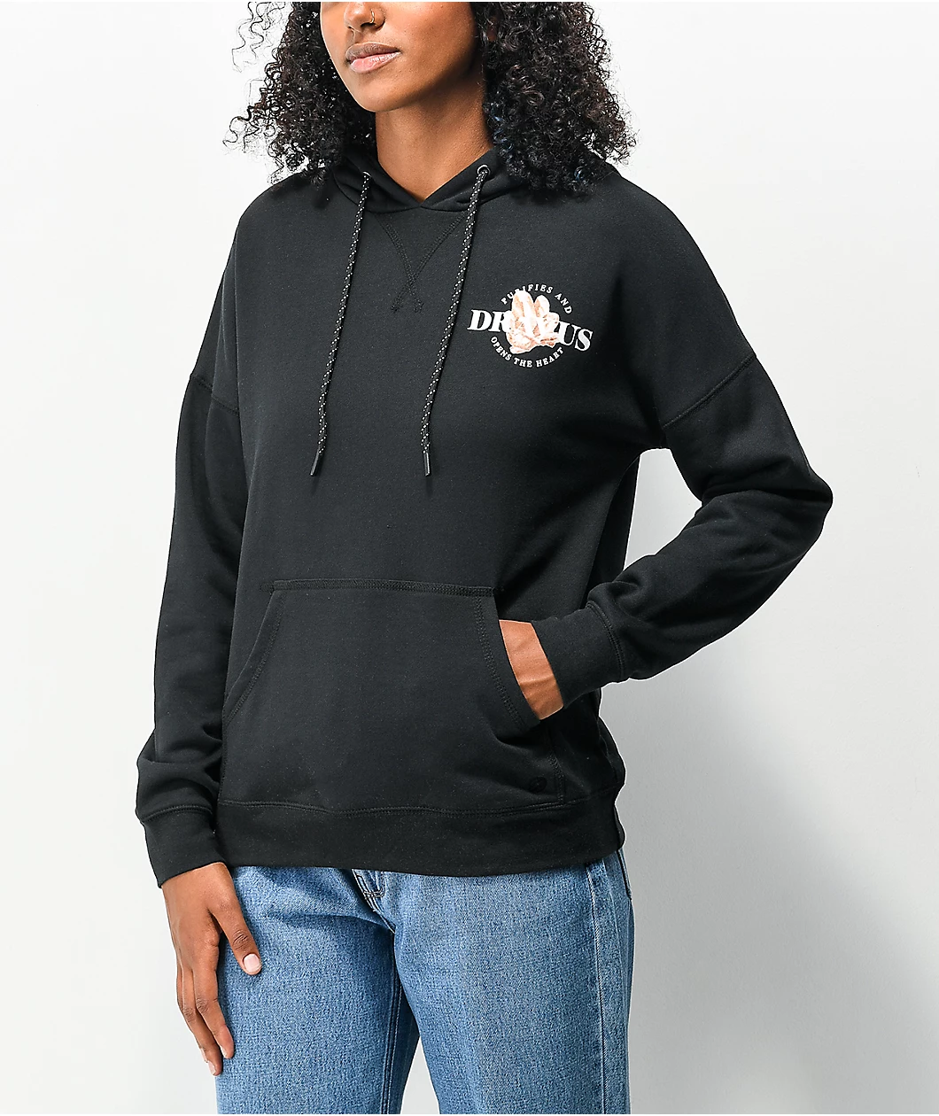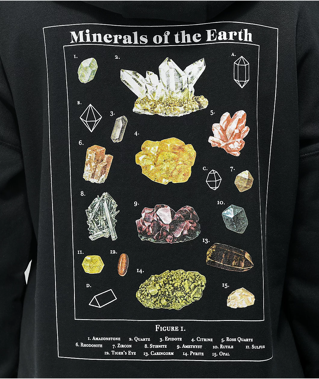 The Kalina Minerals hoodie from Dravus comes in a black colorway with a brushed interior and a drawstring-adjustable hood to keep it comfortable. This pullover sweatshirt has the a brand logo on the left of the chest and screen-printed graphics of a series of stones sit at the sweatshirt’s back, each numbered and paired with its name below.