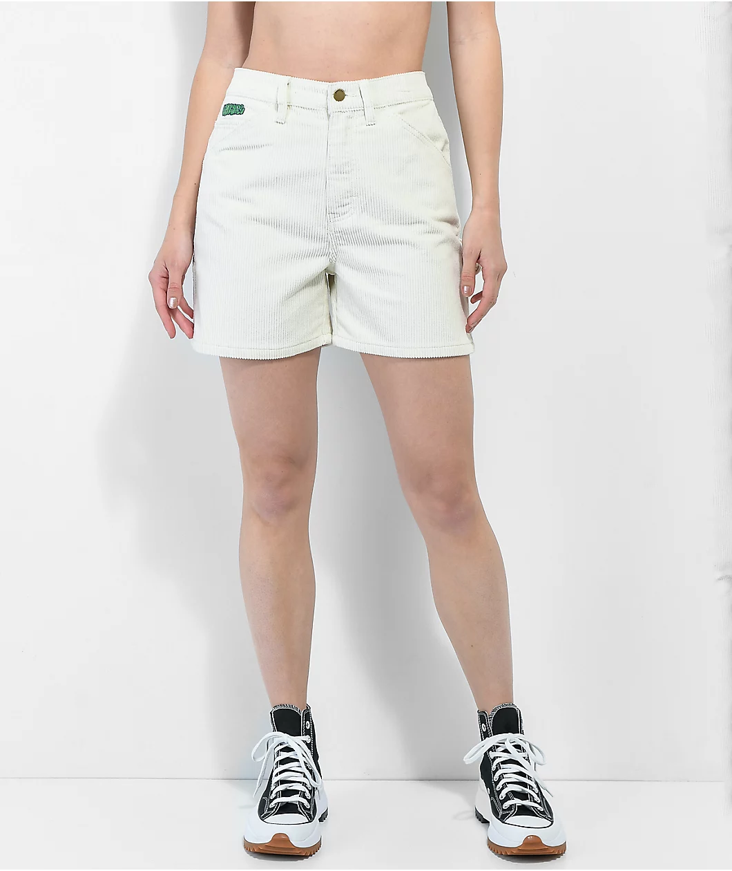Inspired by 90s streetwear and skate culture, the Laurel Empyre skate shorts have a corduroy construction and classic carpenter detailing. These Empyre shorts come in a cream colorway with brand embroidery at the right hip and a brand patch on the rear waistline, as well as custom hardware.