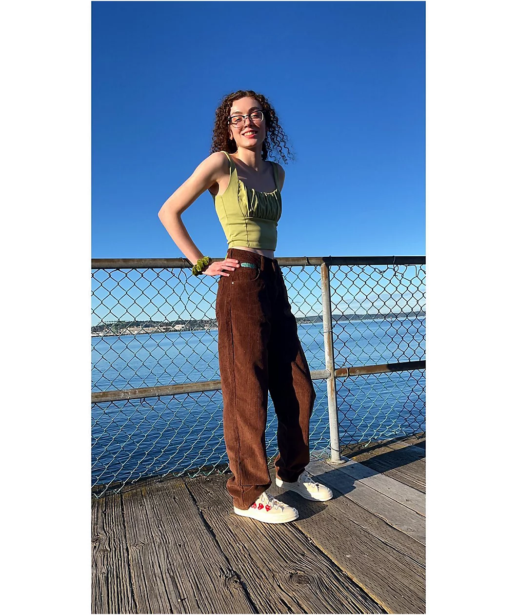 Toss some textured style into your pants collection with the Tori Carafe corduroy skate pants from Empyre! These skate pants feature a corduroy, loose-fit silhouette construction in a dark brown colorway, providing ample room for comfort, and a bold look for any ‘fit.