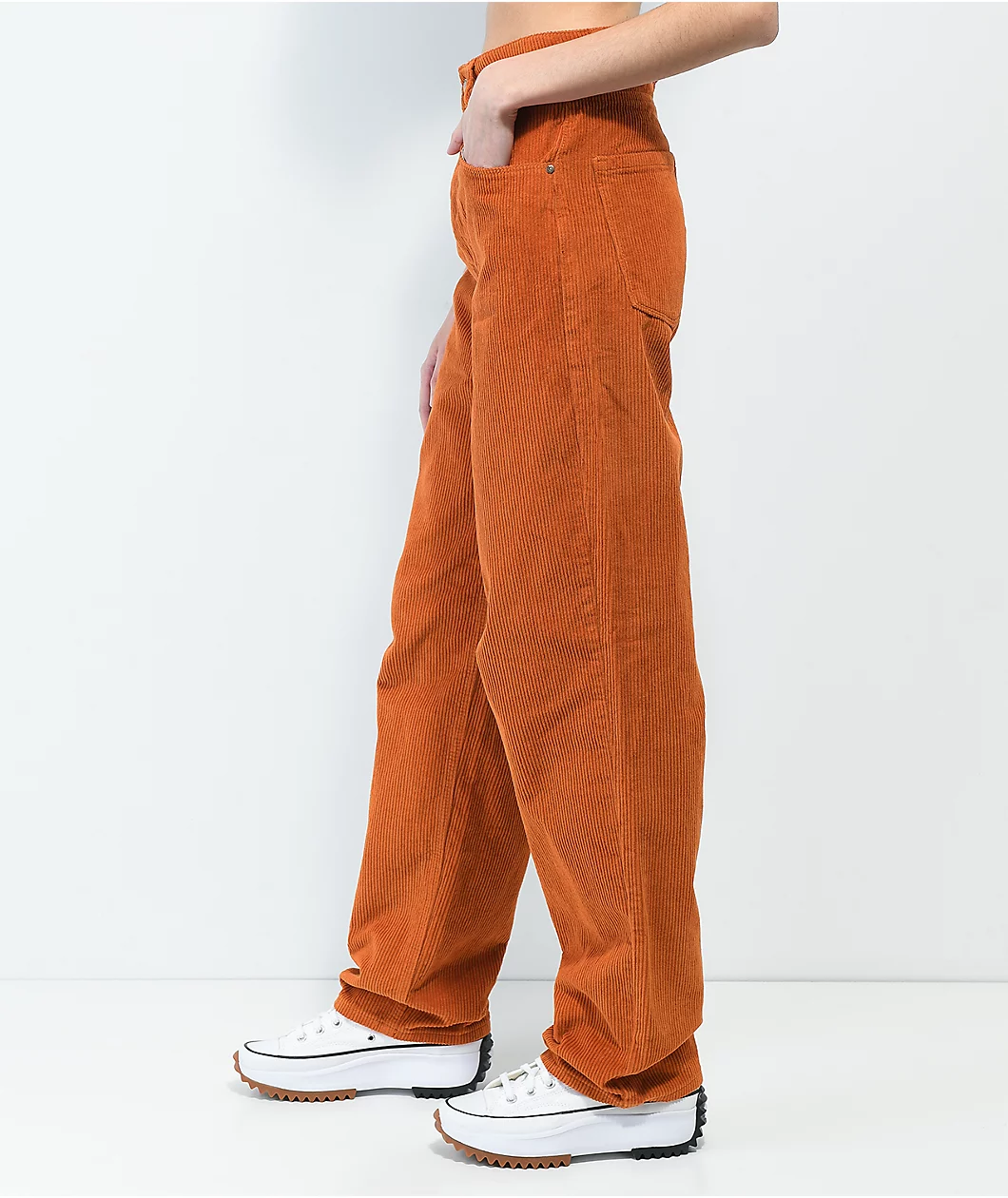 Inspired by the baggy pants trend of the 1990s and early 2000s, the Tori Empyre skate pants have a corduroy construction and a loose fit. These Empyre cords come in a rust brown colorway, with small brand embroidery at the right hip, and a patch at the rear waistline. They have two hand pockets, a stash pocket, and two rear patch pockets.