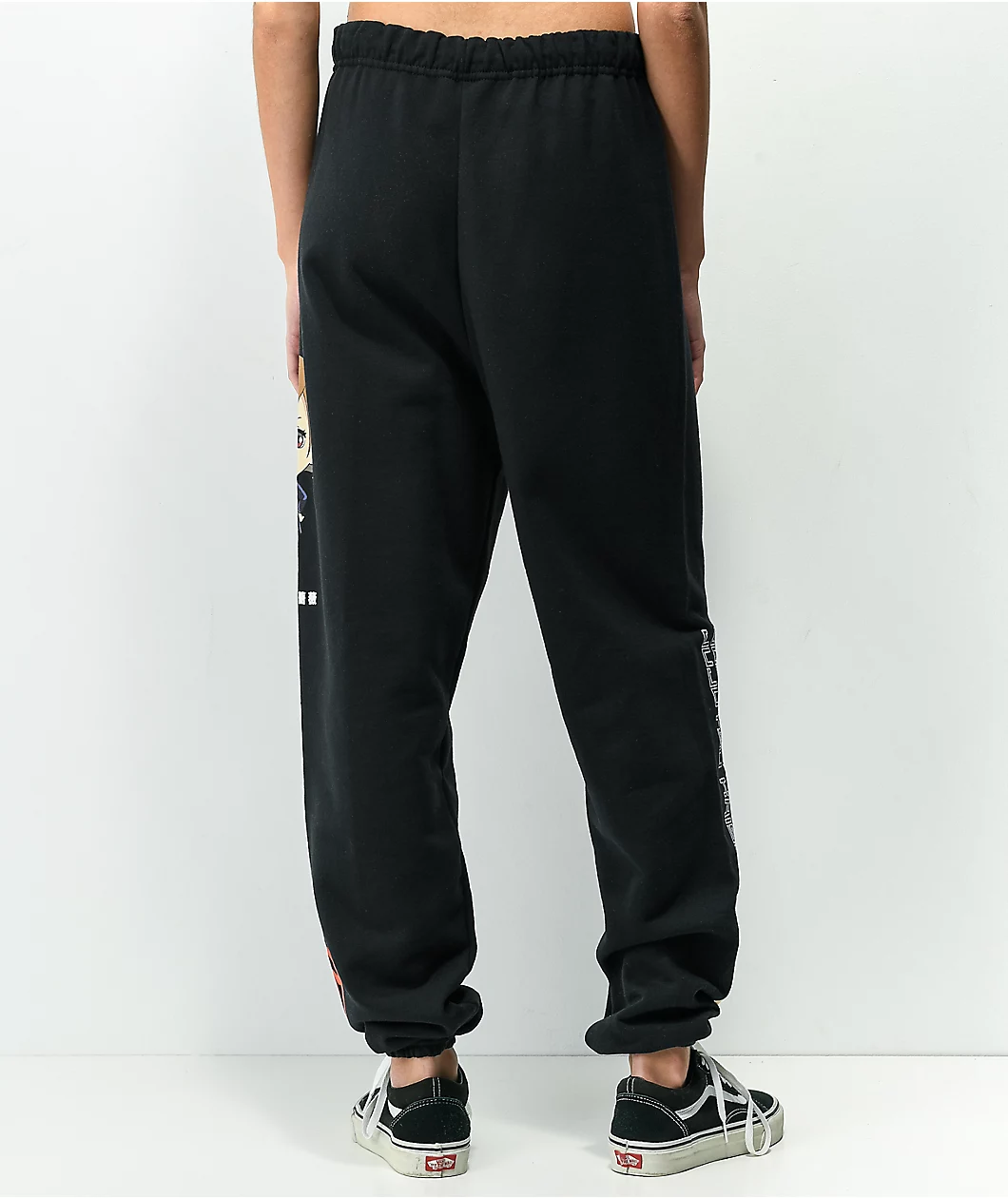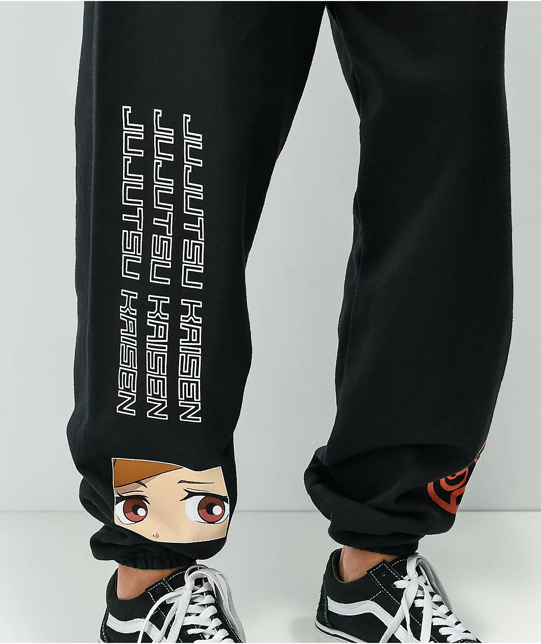 Drop some determined style into your casual outfits with Episode x Jujutsu Kaisen’s Nobara black sweatpants! These sweats come constructed from a blend of cotton and polyester, sure to keep your legs warm and cozy, while the relaxed silhouette and elastic waistband and cuffs keep the sweatpants cozy. Screen-printed graphics of skilled sorcerer Nobara Kugisaki sit just below the sweats’ left hip, with repeated Jujutsu Kaisen script on the right shin, lending the look a dash of slick, spirit-dispelling steez.