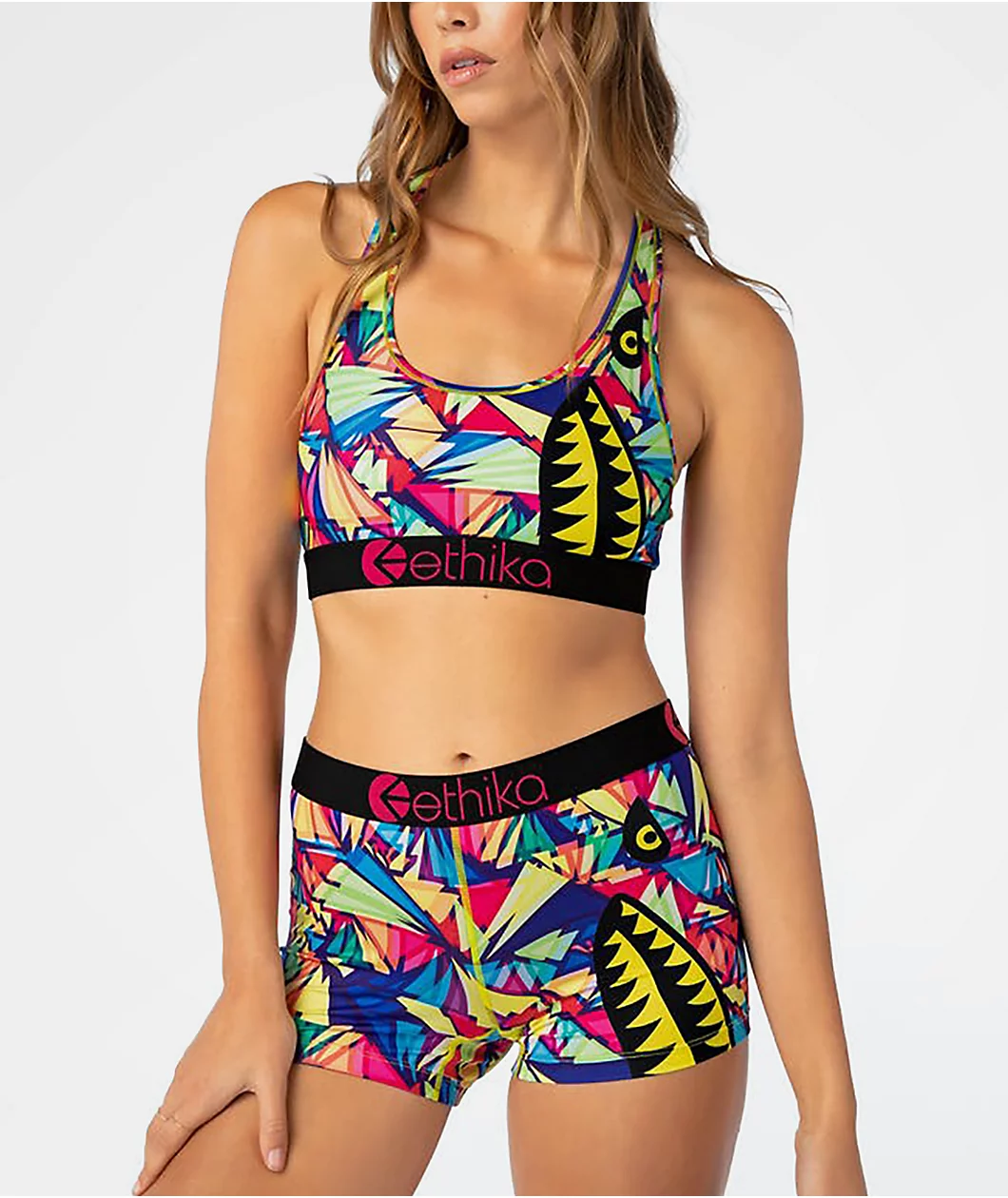 Chuck some cute, colorful style into your underwear drawer with Ethika’s Bomber Many Views boyshort underwear. The boxer-style silhouette and soft, stretchy construction keep these shorts cozy, while a kaleidoscope of colorful shapes throughout the shorts and a Bomber logo on the lower left leg work together to lend them some bold, branded style.