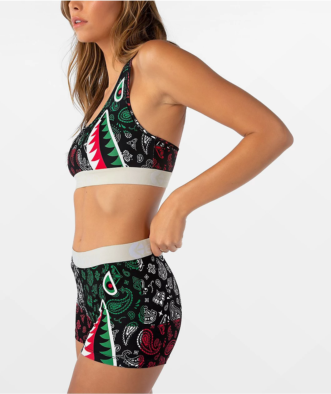 Support your gals in fun style with the Ethika Bomber Paisley sports bra. A classic bomber graphic is paired with paisley patterns throughout for a striking look, while the thick underbust band offers the support you need for all day comfort.