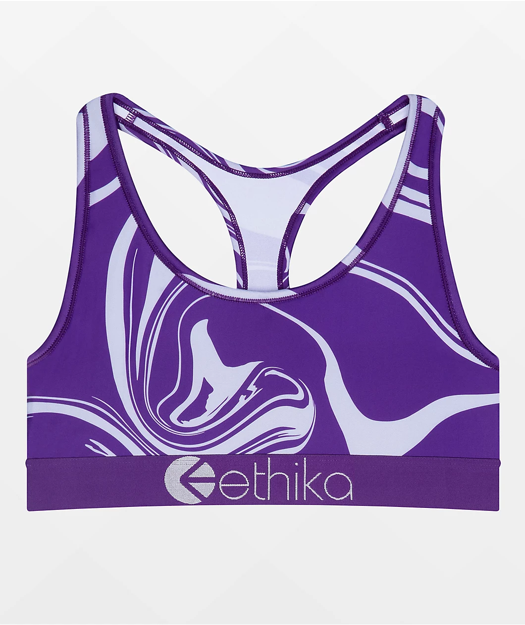 Throw some wavy vibes into your daily looks with the Ethika purple wave sports bra. Wavy purple patterns line the entirety for a pop of vibrancy, while the thick underbust band offers serious support as well.