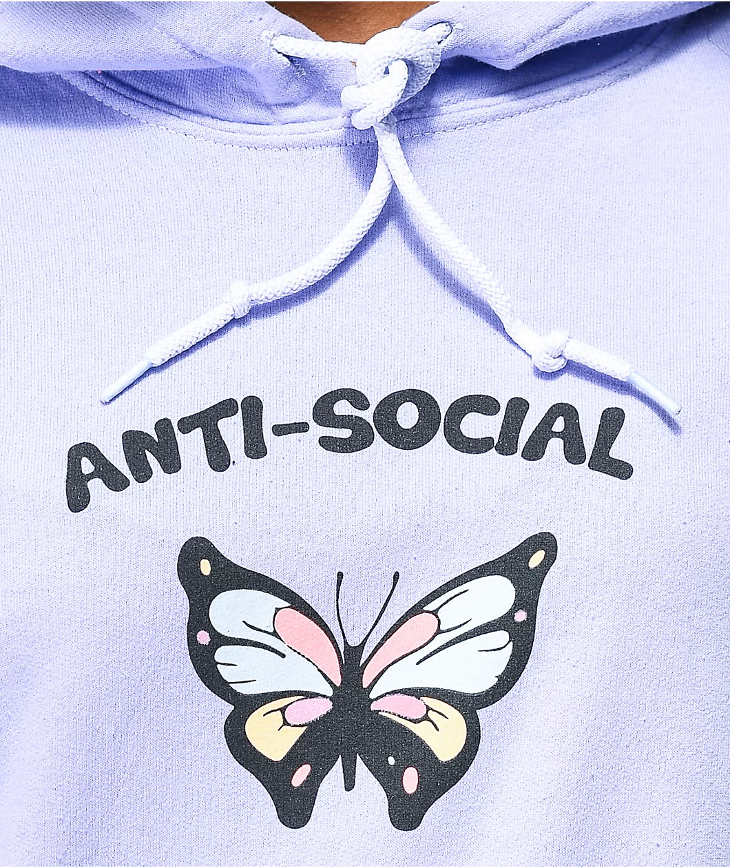 Make a statement when you rock the Anti-Social purple hoodie from JV by Jac Vanek. This light purple hoodie features a soft cotton-polyester construction, adjustable drawstring hood, a kangaroo pocket, and ribbed knit sleeve cuffs and bottom hem. Text that reads “Anti-Social” is printed at the chest with a multicolored butterfly below, finishing off this fun layer from JV by Jac Vanek.
