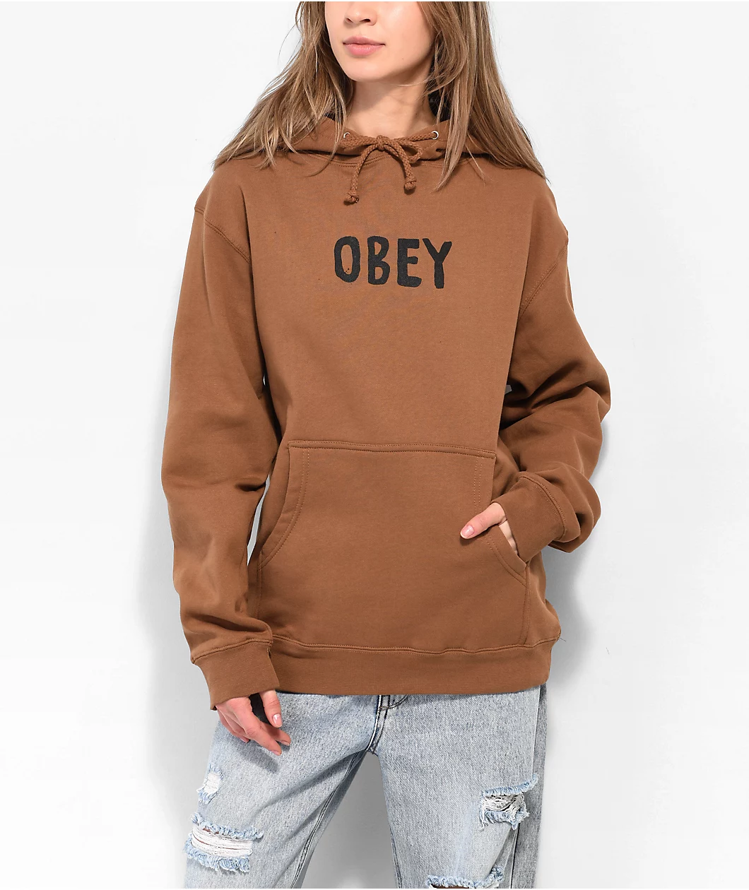 Coming in a earthy brown sugar colorway, the Hong Kong Photo hoodie features a black and white image of Shepard Fairey’s infamous “Giant” icon in downtown Hong Kong. With black brand text centered on the chest, the casual Obey hoodie is finished with a brushed interior, a kangaroo pouch pocket, and a drawstring adjustable hood.