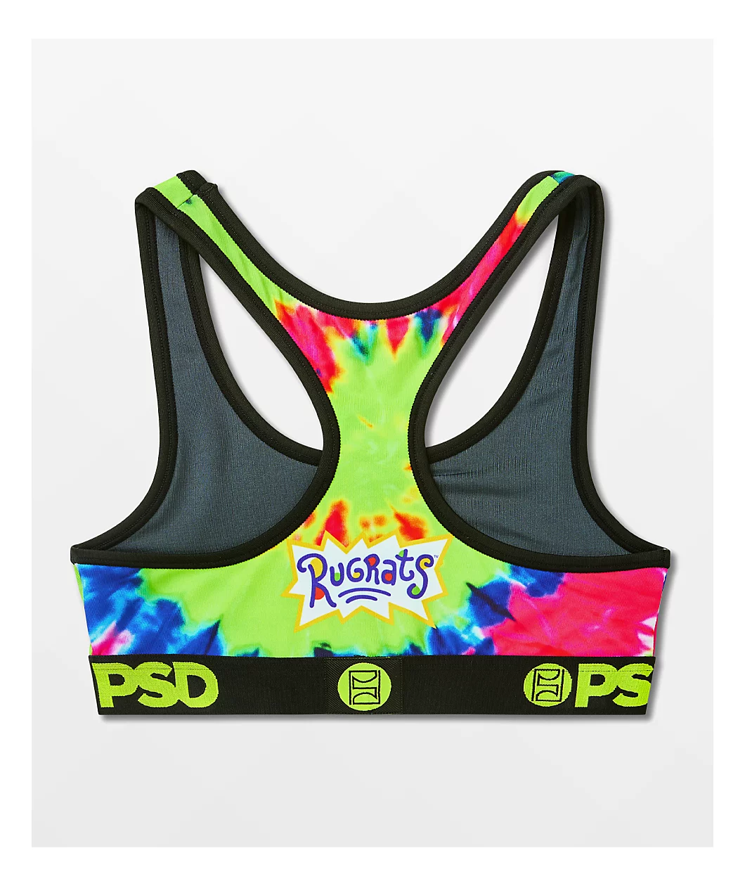 This collaboration is as stylish as it is comfortable. The PSD x Rugrats sports bra comes in a multicolored tie dye colorway with a sublimated graphic of the whole Rugrats gang and Reptar on the center of the chest. This sports bra is made from a microfiber blend of polyester and elastane that offers premium breathability and support; that way you can be comfortable all-day long.